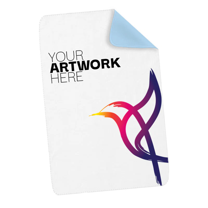 - Blankets are printed on superior 285gsm fleece material backed with a choice of white, baby blue and baby pink 285gsm fleece.